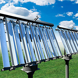 Grâce au revêtement plasma du procédé PlasmaPlus® , les miroirs thermiques solaires des systèmes d’énergie solaire peuvent être dotés de manière fiable d’un revêtement de protection anticorrosion (énergie solaire thermique) semblable à du verre.