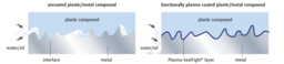 Plasma-SealTight® crea un legame a livello molecolare con il metallo (acciaio inox, rame, alluminio, acciaio) e allo stesso tempo genera composti organici (gruppi funzionali) che assicurano una forte adesione tra il metallo stesso e la plastica.